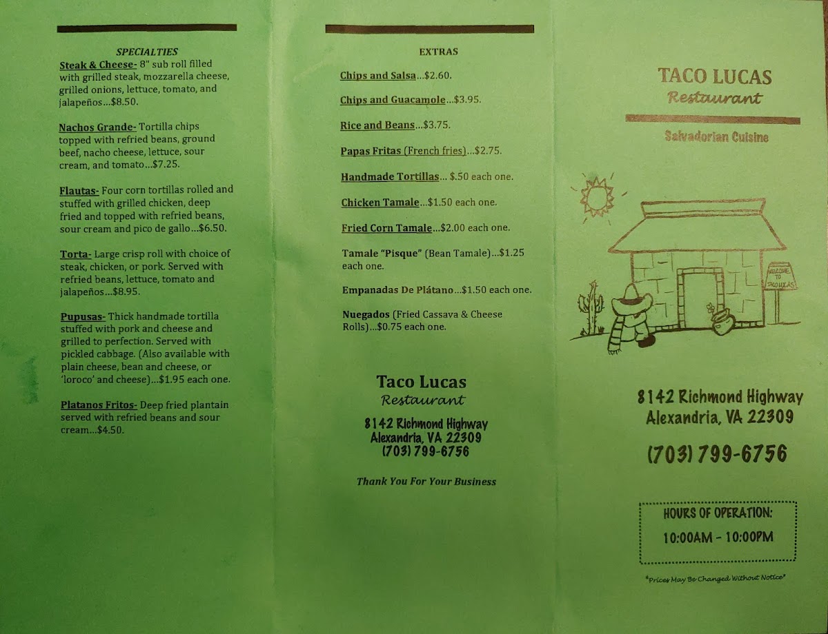 Taco Lucas Menu